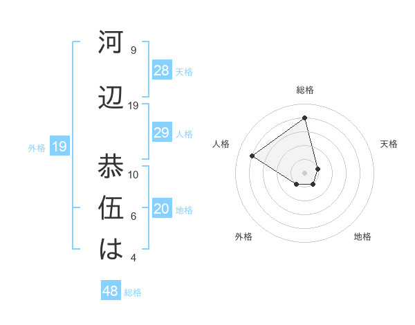 河辺 恭伍はさんの総格は48画の4点!
