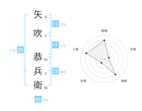 矢吹 恭兵衛さんの総格は45画の4点!