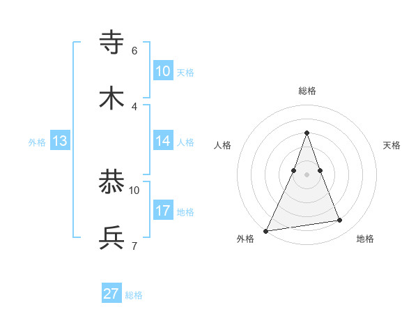 寺木 恭兵さんを姓名の画数から五運を鑑定