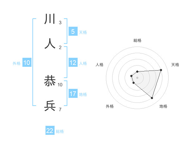 川人 恭兵さんの総格は22画の1点!