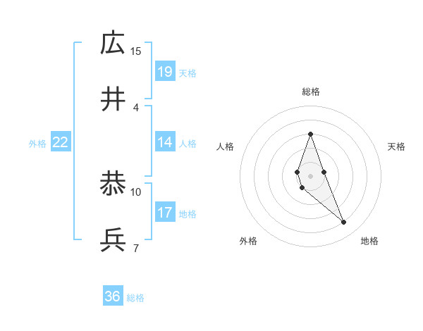 広井 恭兵さんの外格は22画の1点!