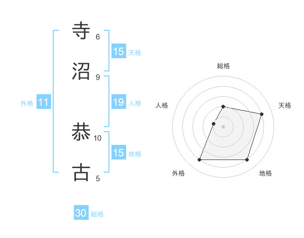 寺沼 恭古さんの天格は15画の4点!