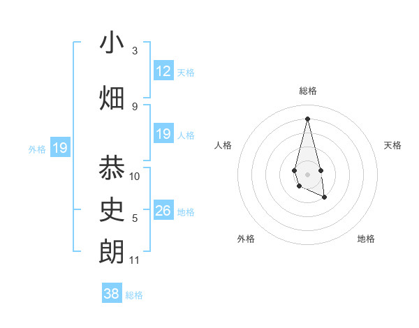 小畑 恭史朗さんを姓名の画数から五運を鑑定