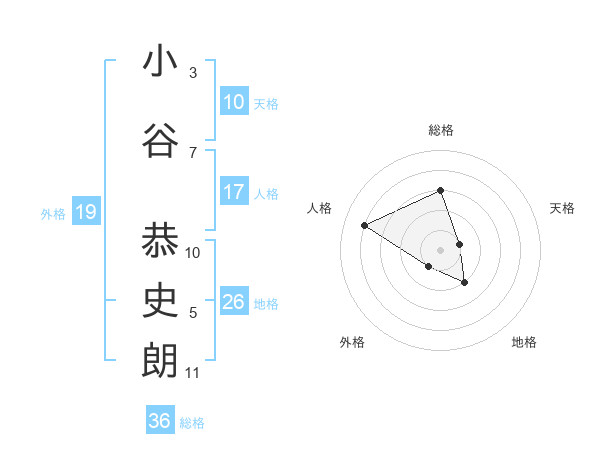 小谷 恭史朗さんの総格は36画の3点!