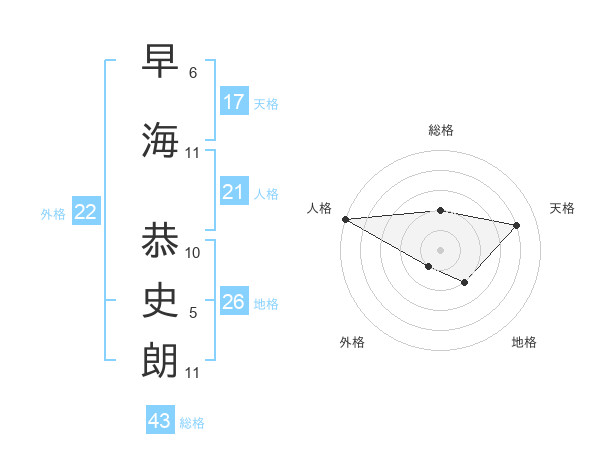 早海 恭史朗さんを姓名の画数から五運を鑑定