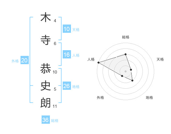 木寺 恭史朗さんを姓名の画数から五運を鑑定