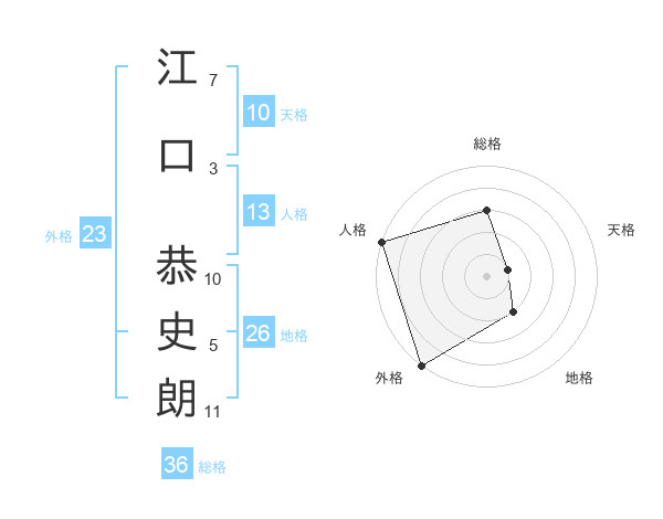 江口 恭史朗さんの総格は36画の3点!