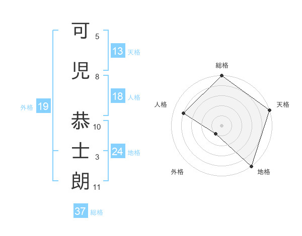 可児 恭士朗さんの総格は37画の5点!