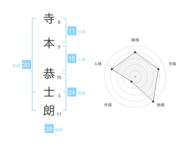 寺本 恭士朗さんの地格は24画の5点!