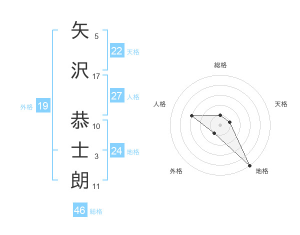 矢沢 恭士朗さんの地格は24画の5点!