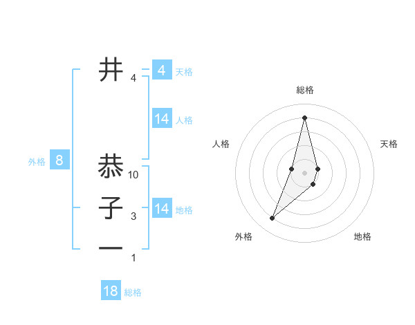 井 恭子一さんの外格は8画の4点!