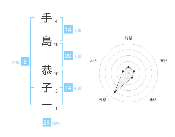 手島 恭子一さんの総格は28画の1点!