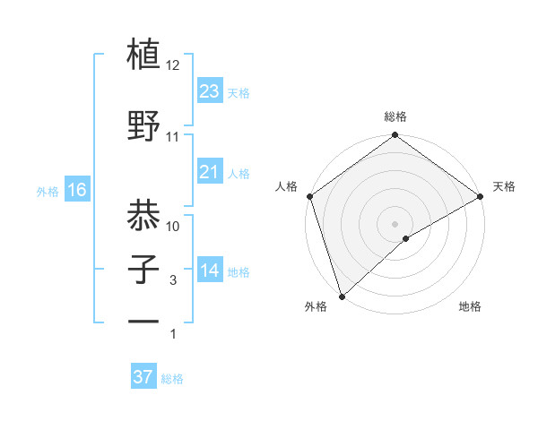 植野 恭子一さんを姓名の画数から五運を鑑定