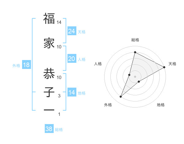 福家 恭子一さんを姓名の画数から五運を鑑定