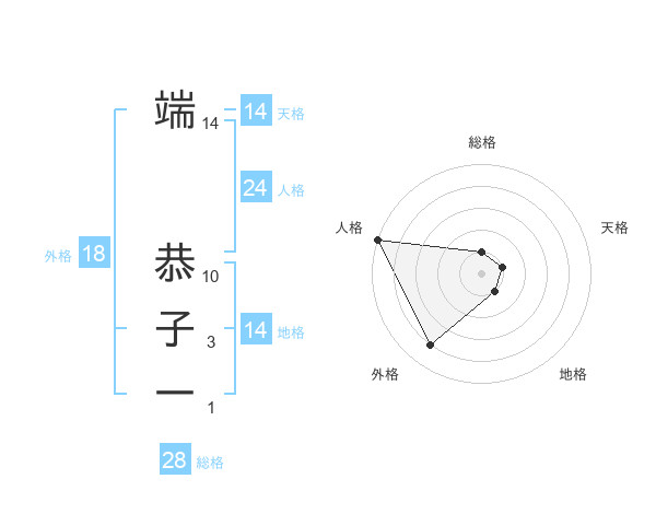 端 恭子一さんの総格は28画の1点!