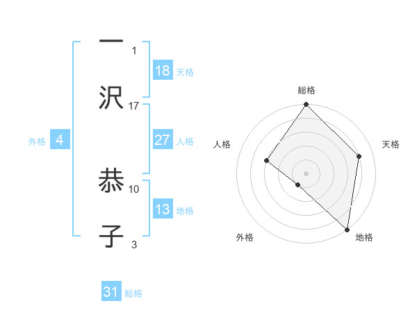一沢 恭子さんの総格は31画の5点
