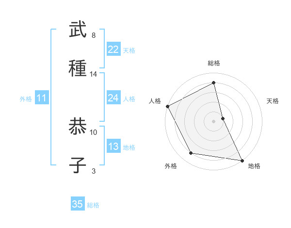 武種 恭子さんの総格は35画の4点!