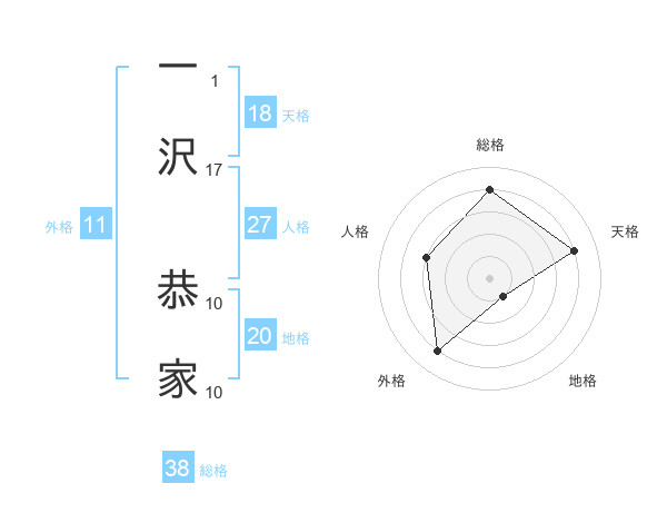 一沢 恭家さんを姓名の画数から五運を鑑定