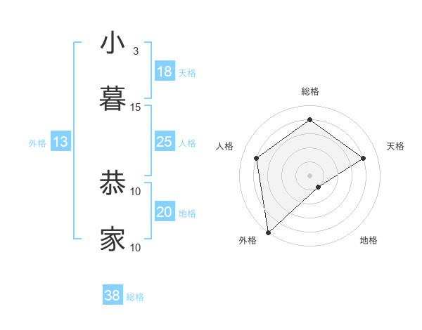 小暮 恭家さんを姓名の画数から五運を鑑定