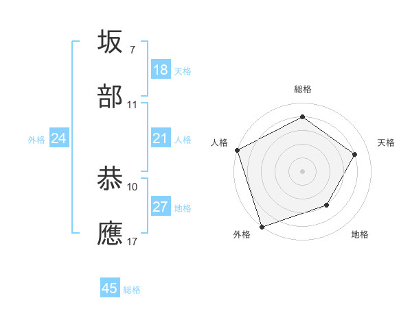 坂部 恭應さんの外格は24画の5点!