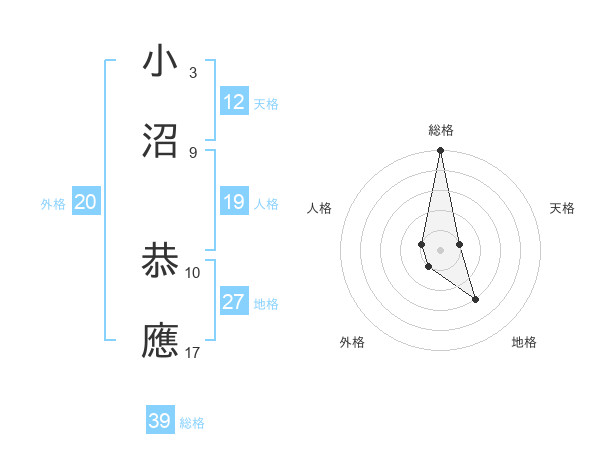 小沼 恭應さんを姓名の画数から五運を鑑定