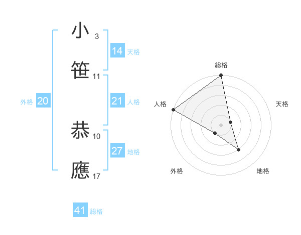 小笹 恭應さんを姓名の画数から五運を鑑定