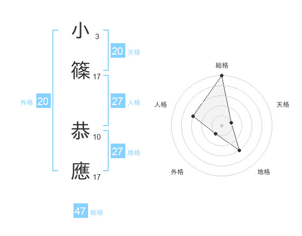 小篠 恭應さんの総格は47画の5点!