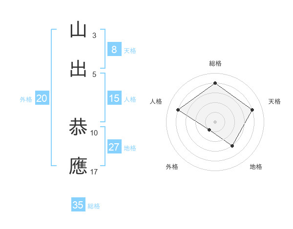 山出 恭應さんの天格は8画の4点!