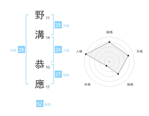野溝 恭應さんを姓名の画数から五運を鑑定
