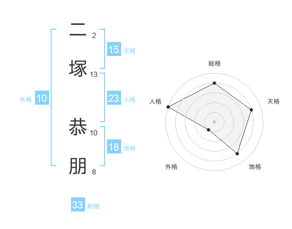 二塚 恭朋さんの総格は33画の4点!
