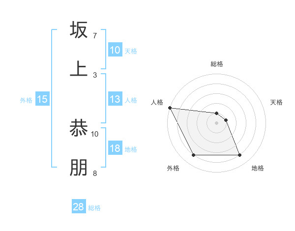坂上 恭朋さんの総格は28画の1点!
