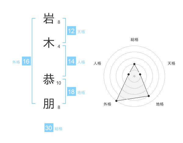 岩木 恭朋さんを姓名の画数から五運を鑑定