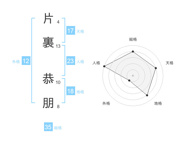 片裏 恭朋さんを姓名の画数から五運を鑑定