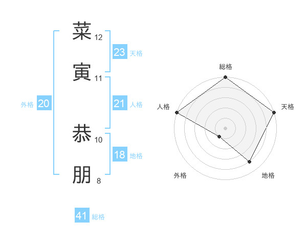 菜寅 恭朋さんを姓名の画数から五運を鑑定