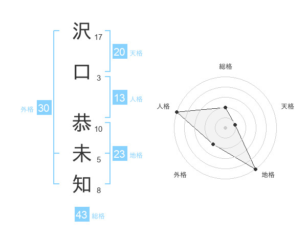 沢口 恭未知さんを姓名の画数から五運を鑑定