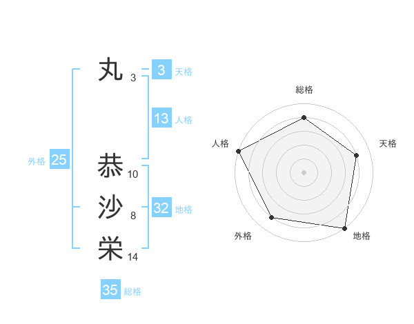 丸 恭沙栄さんを姓名の画数から五運を鑑定