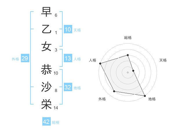 早乙女 恭沙栄さんを姓名の画数から五運を鑑定