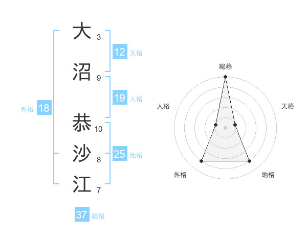 大沼 恭沙江さんの総格は37画の5点