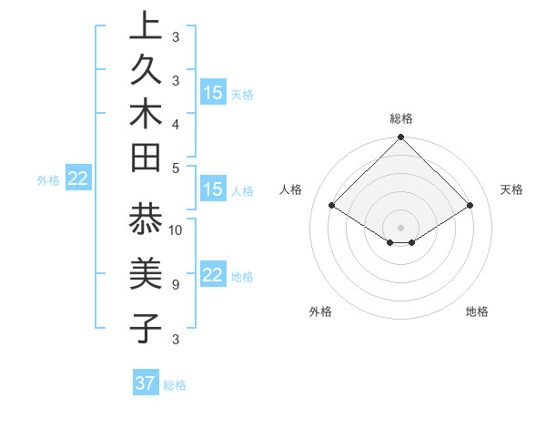 上久木田 恭美子さんを姓名の画数から五運を鑑定