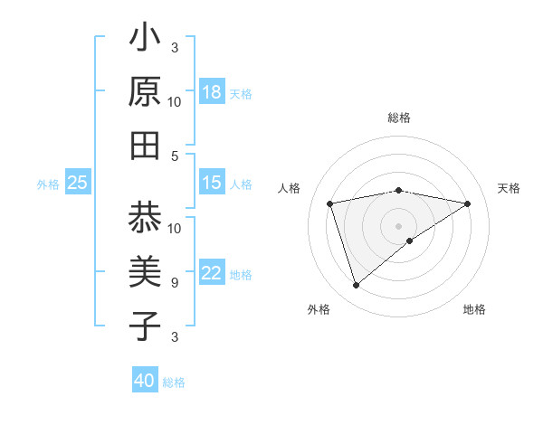 小原田 恭美子さんを姓名の画数から五運を鑑定
