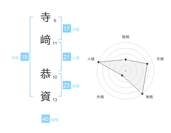 寺﨑 恭資さんの天格は17画の4点!