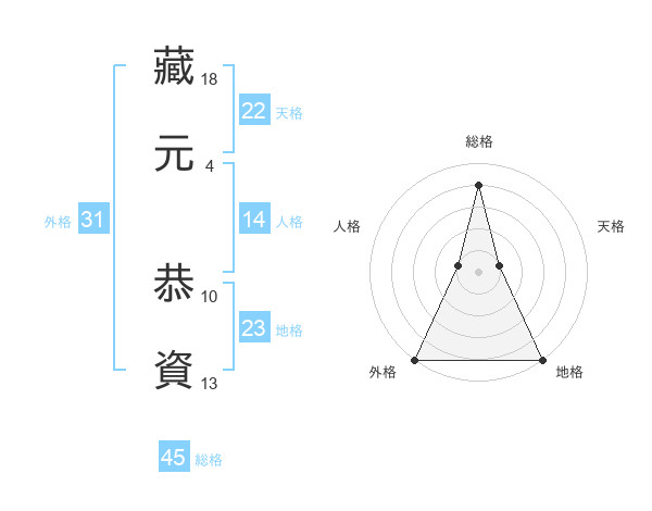 藏元 恭資さんの総格は45画の4点!
