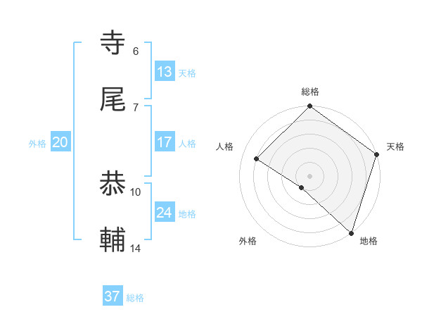 寺尾 恭輔さんの総格は37画の5点!