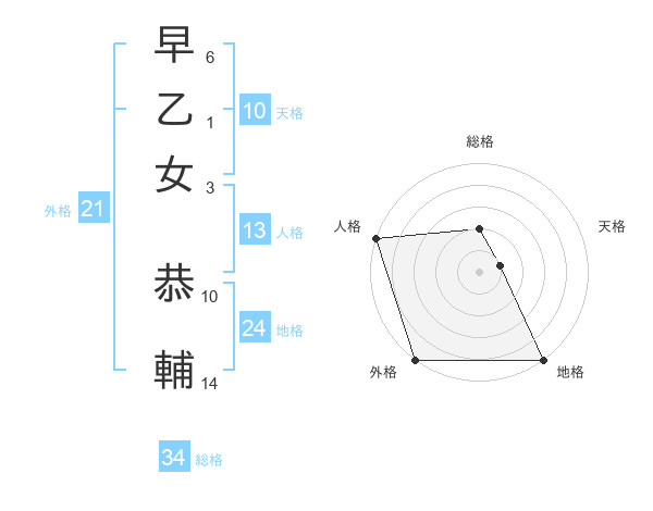 早乙女 恭輔さんの総格は34画の2点!