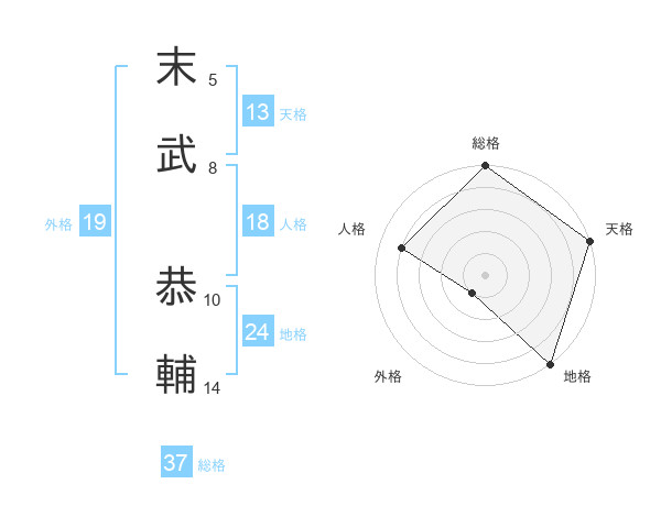 末武 恭輔さんを姓名の画数から五運を鑑定