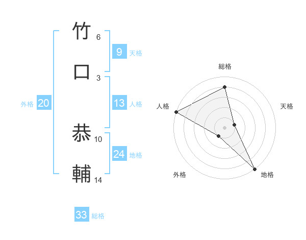 竹口 恭輔さんの総格は33画の4点!