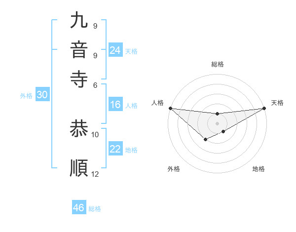 九音寺 恭順さんの総格は46画の1点!