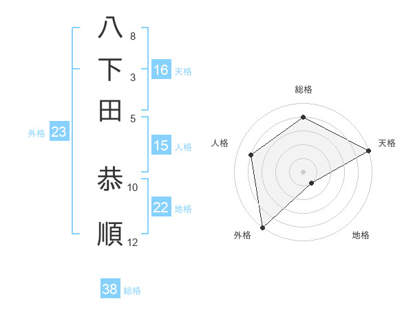 八下田 恭順さんを姓名の画数から五運を鑑定