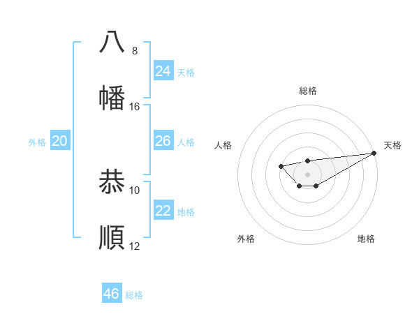 八幡 恭順さんの総格は46画の1点!