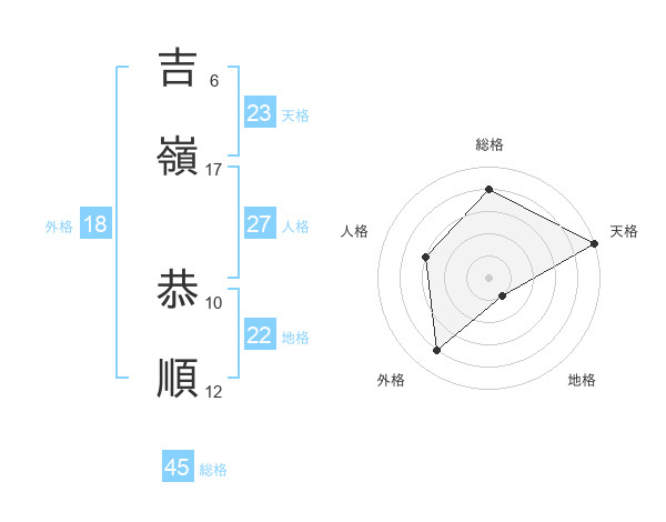 吉嶺 恭順さんの総格は45画の4点!